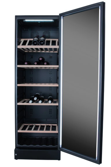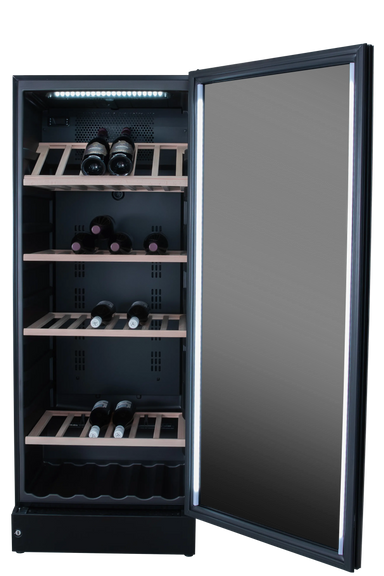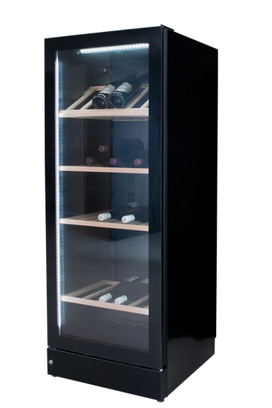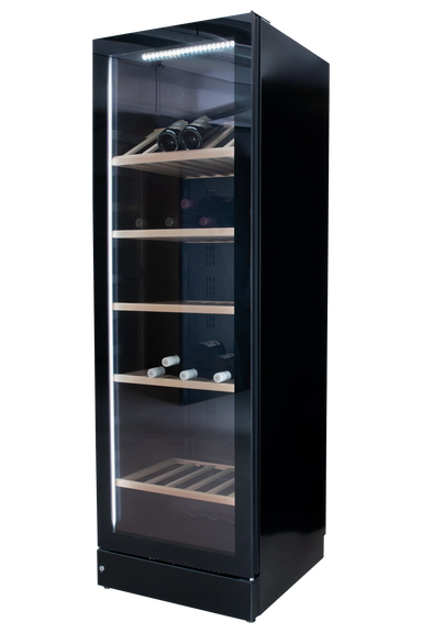 Exclusive full glass wine cabinet with storage room for 197 bottles. The cabinet contains adjustable wooden shelves plus an integrated shelf at ...